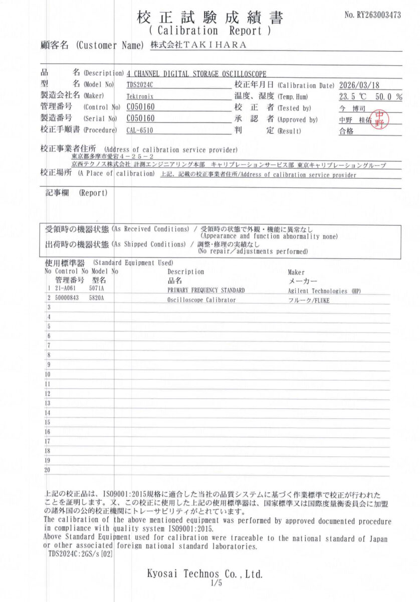 付属品:電源ケーブル、校正試験成績書