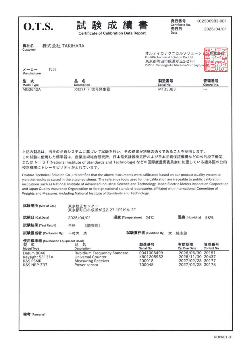 MG3642A シンセサイズド信号発生器 アンリツ S/N:MT33383