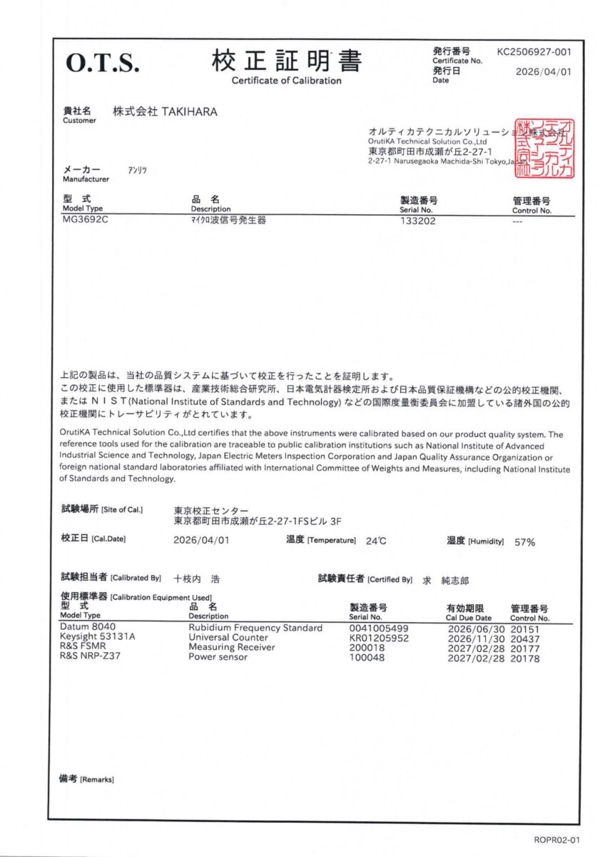 MG3692C シンセサイズド信号発生器 アンリツ S/N:133202