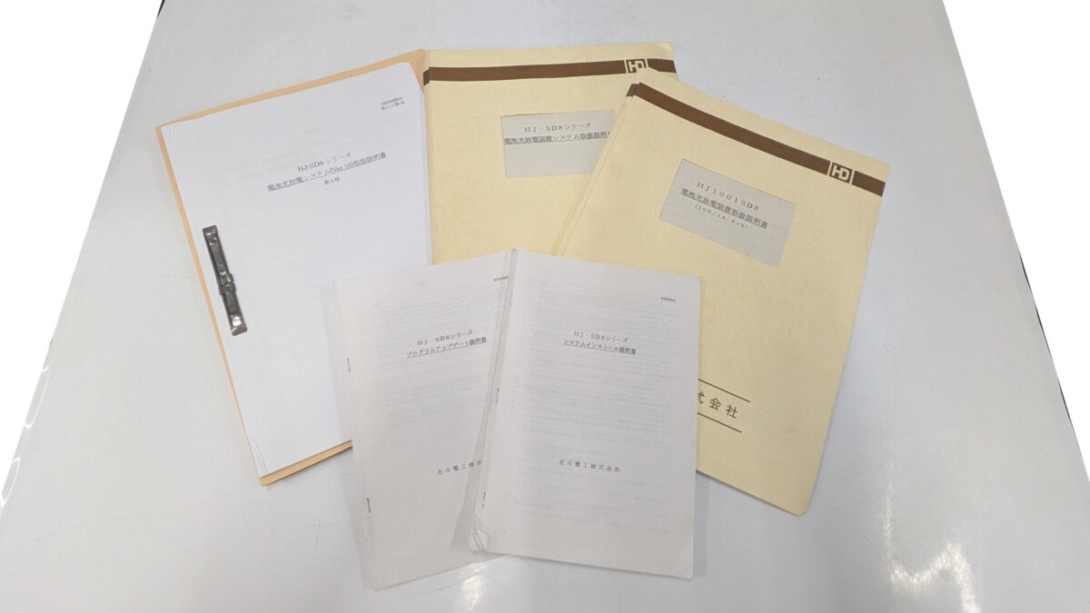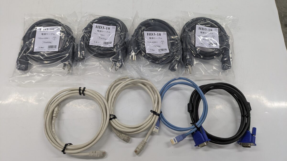電池充放電装置取扱説明書×3、電源ケーブル×4,VGAケーブル、