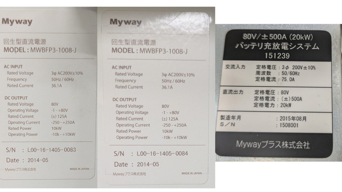 MWCDS-1250-J (MWBFP3) pCUBEバッテリ充放電システム(ラック内蔵) Mywayプラス S/N:L01-11-1406-0090