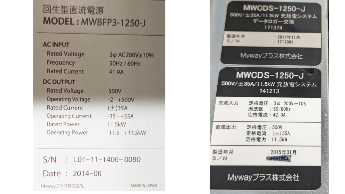 MWCDS-1008-J pCUBE バッテリ充放電システム (2台,ラック内蔵) Mywayプラス S/N:1508001