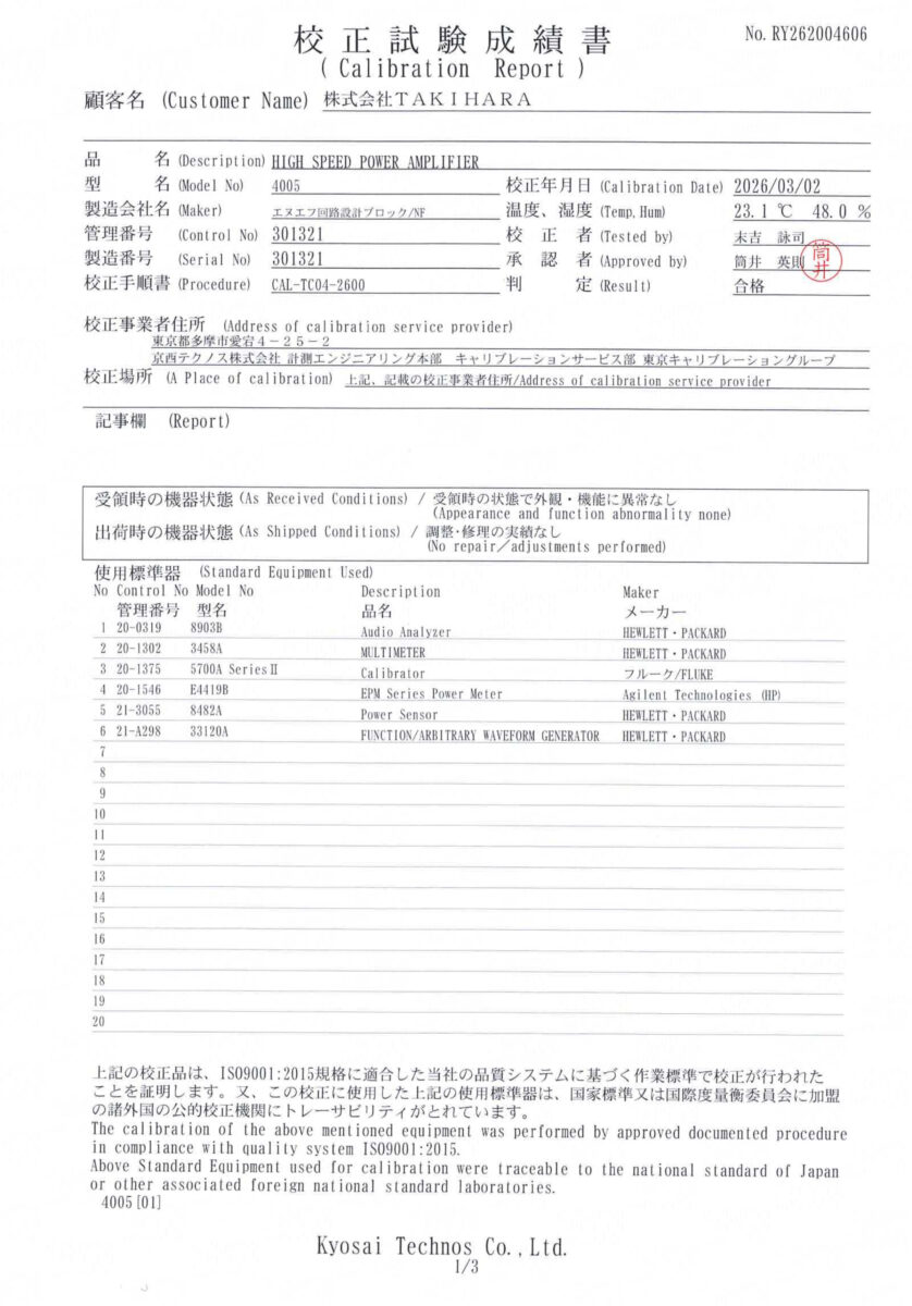 4005 高速電力増幅器 NF回路設計ブロック S/N:301321