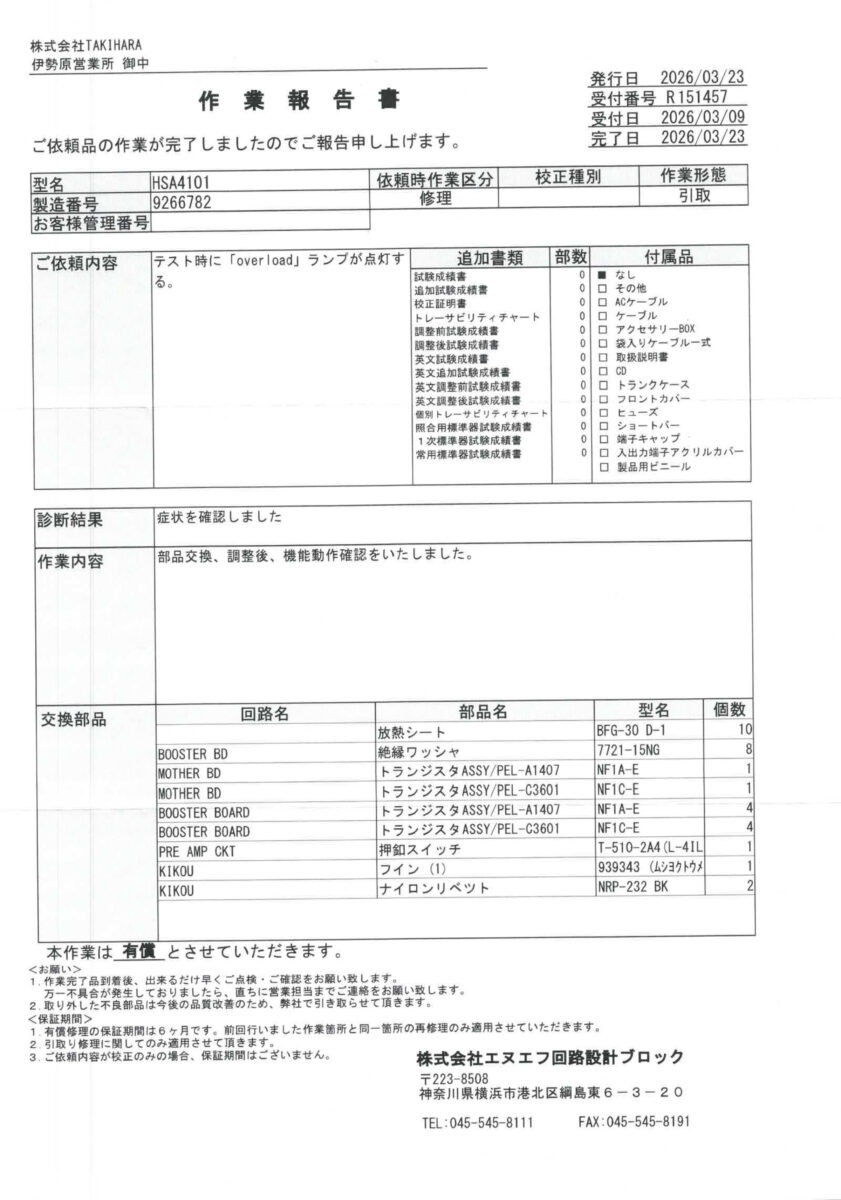 付属品:作業報告書、電源ケーブル