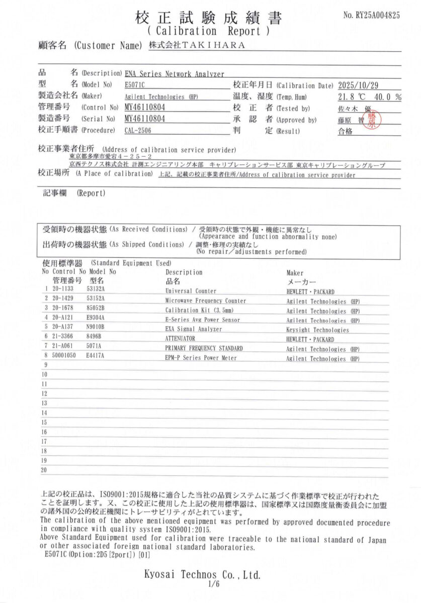 付属品:校正試験成績書