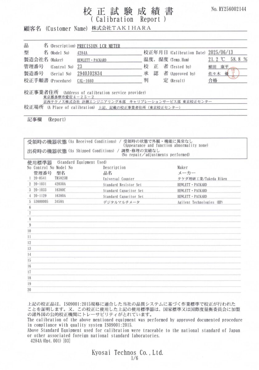 4284A プレシジョンLCRメーター、キーサイト(HP) S/N:2940J02834
