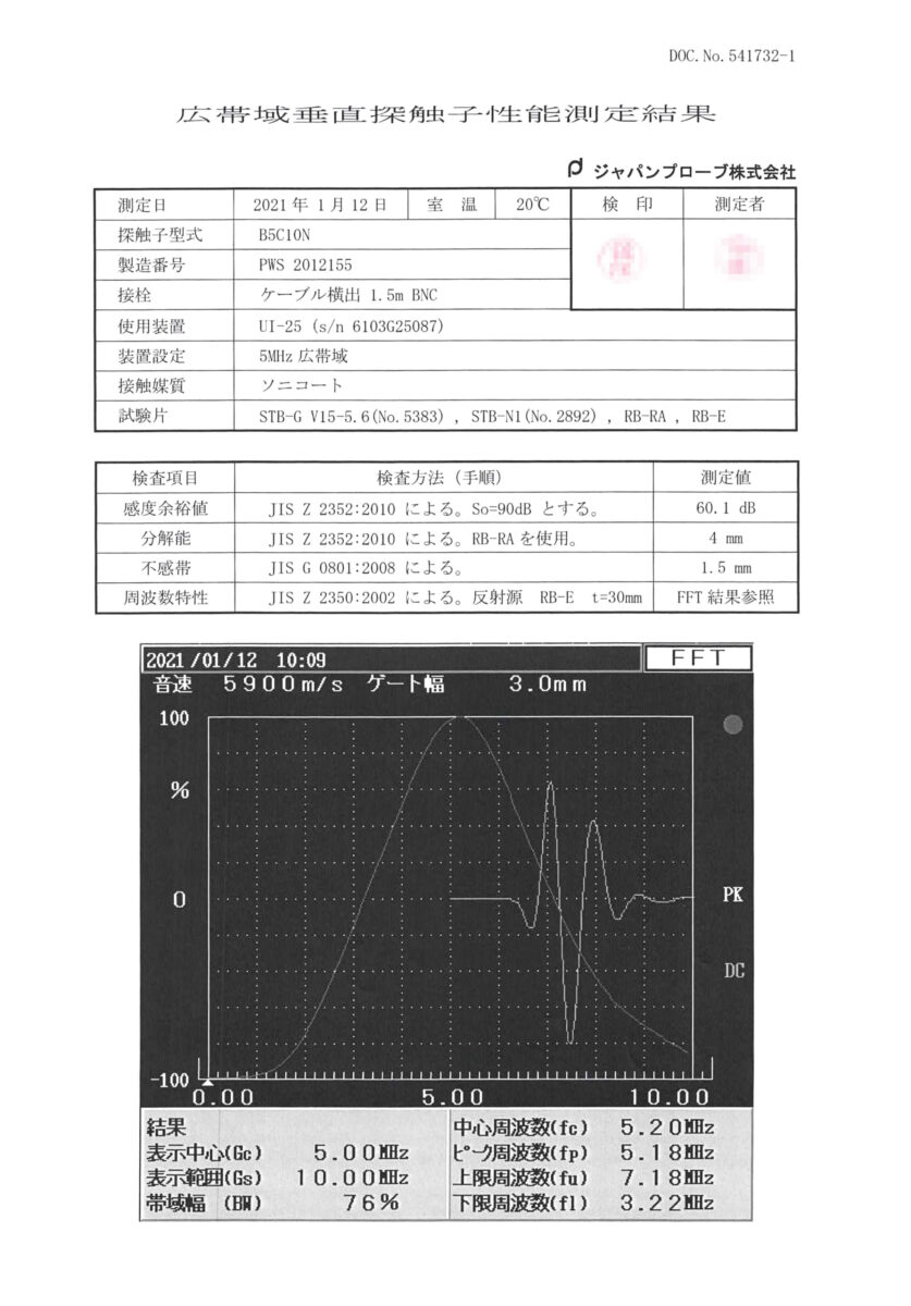 校正試験成績書 (B5C10N 広帯域垂直探触子使用)