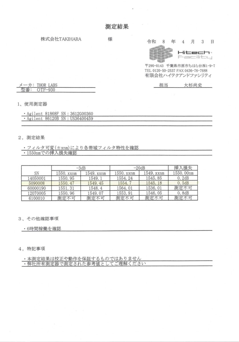 OTF-930 波長可変光フィルター 鍵付 サンテック S/N:05090008