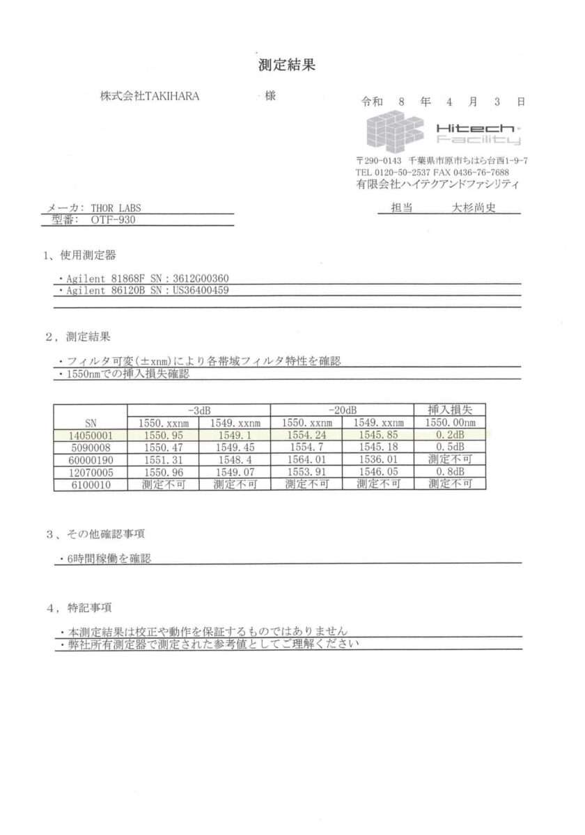OTF-930 波長可変光フィルター 鍵付 サンテック S/N:14050001