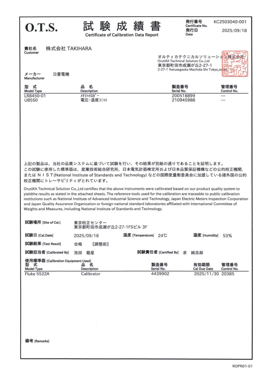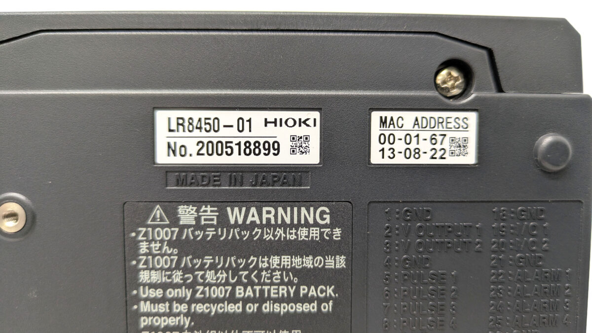 LR8450-01 メモリハイロガー (無線LAN搭載モデル) HIOKI/日置 S/N:200518899