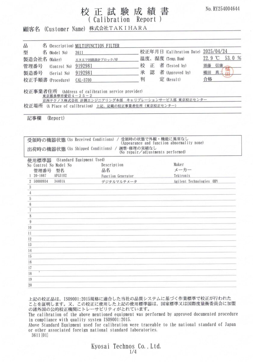 3611 周波数可変フィルタ マルチファンクションフィルタ エヌエフ回路設計ブロック S/N:9192981